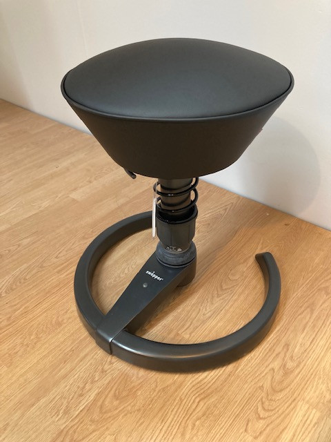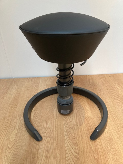 Seat in fabric (black). Disc base in metal (black). Adjustable height.