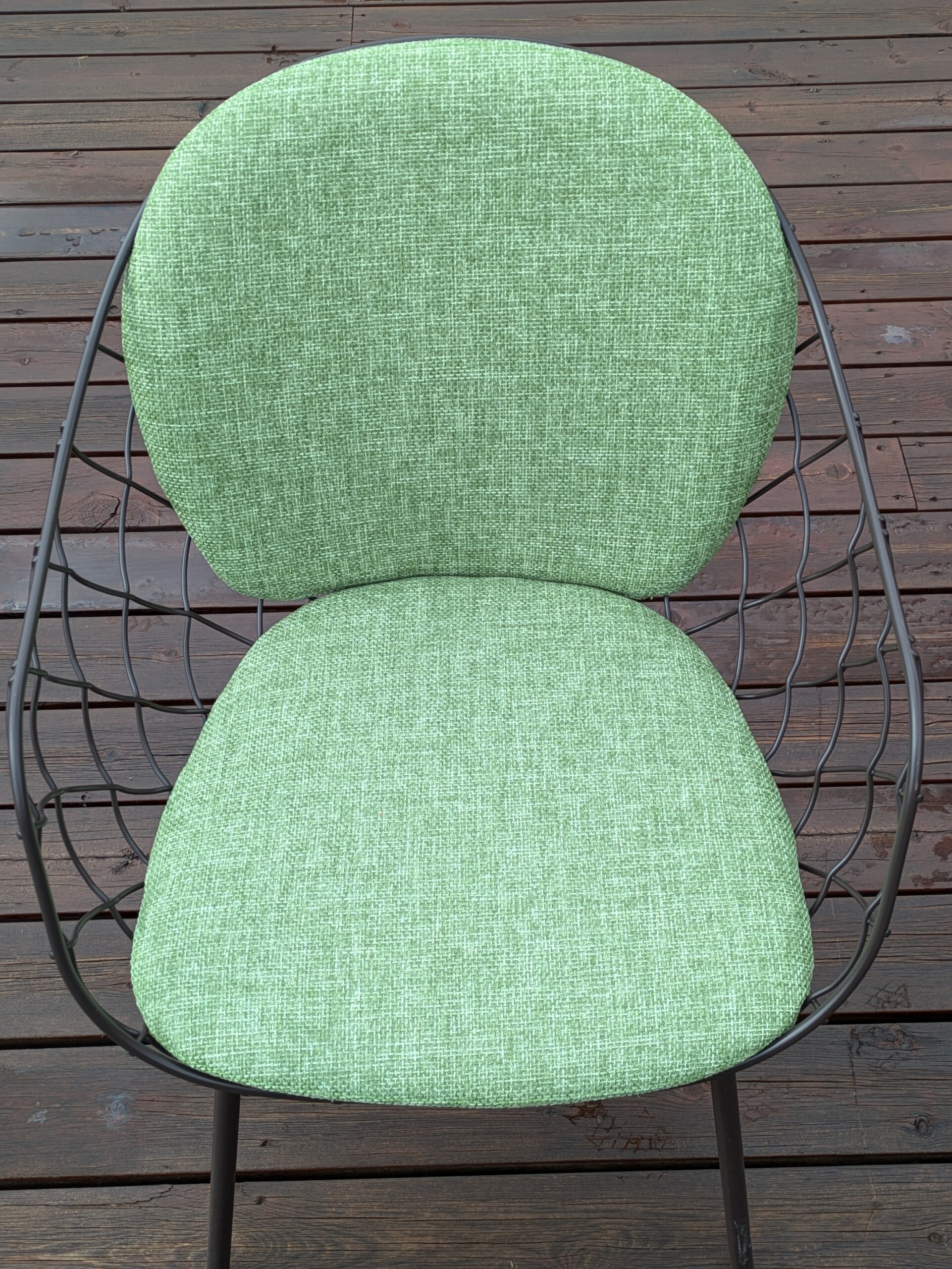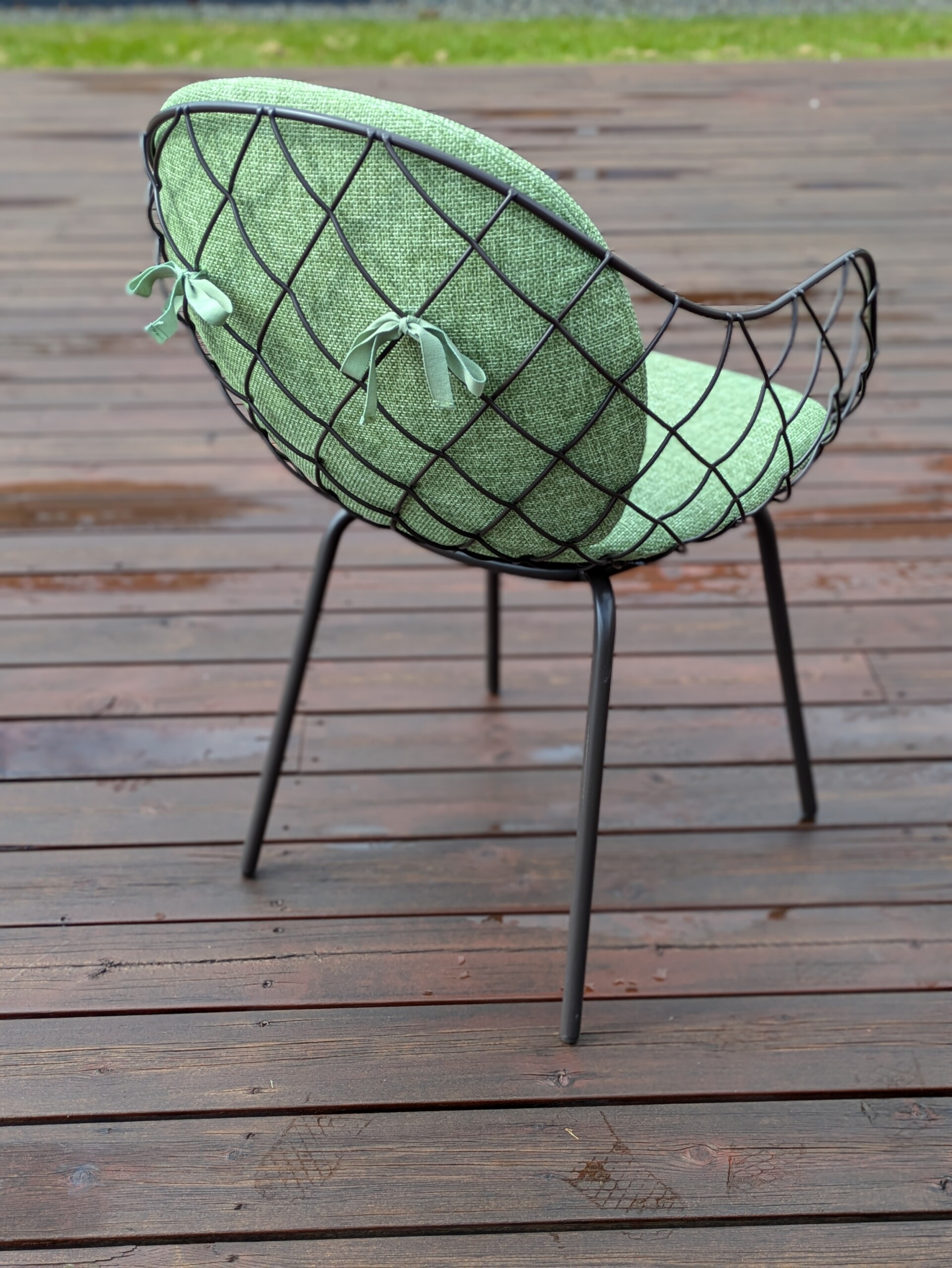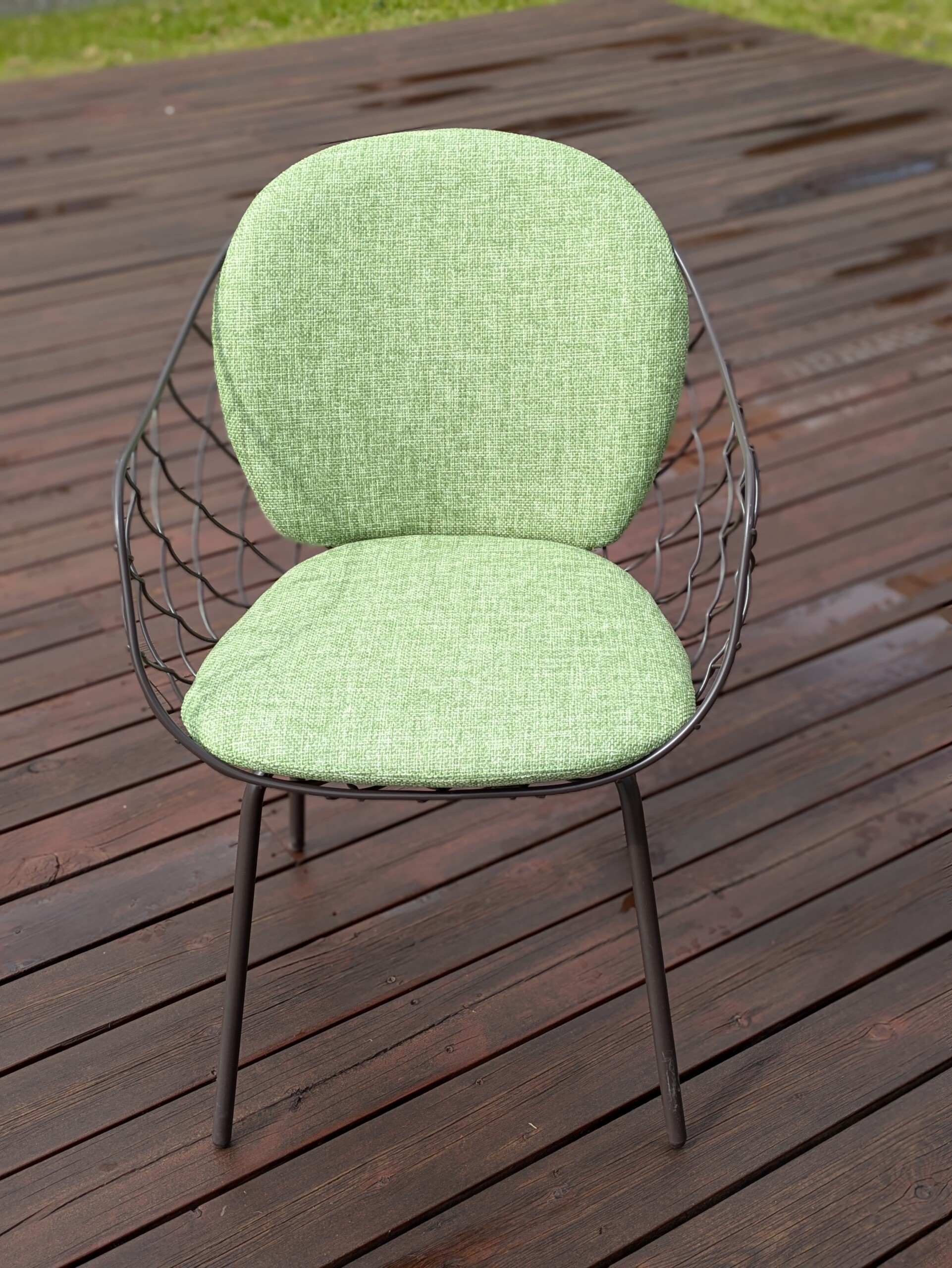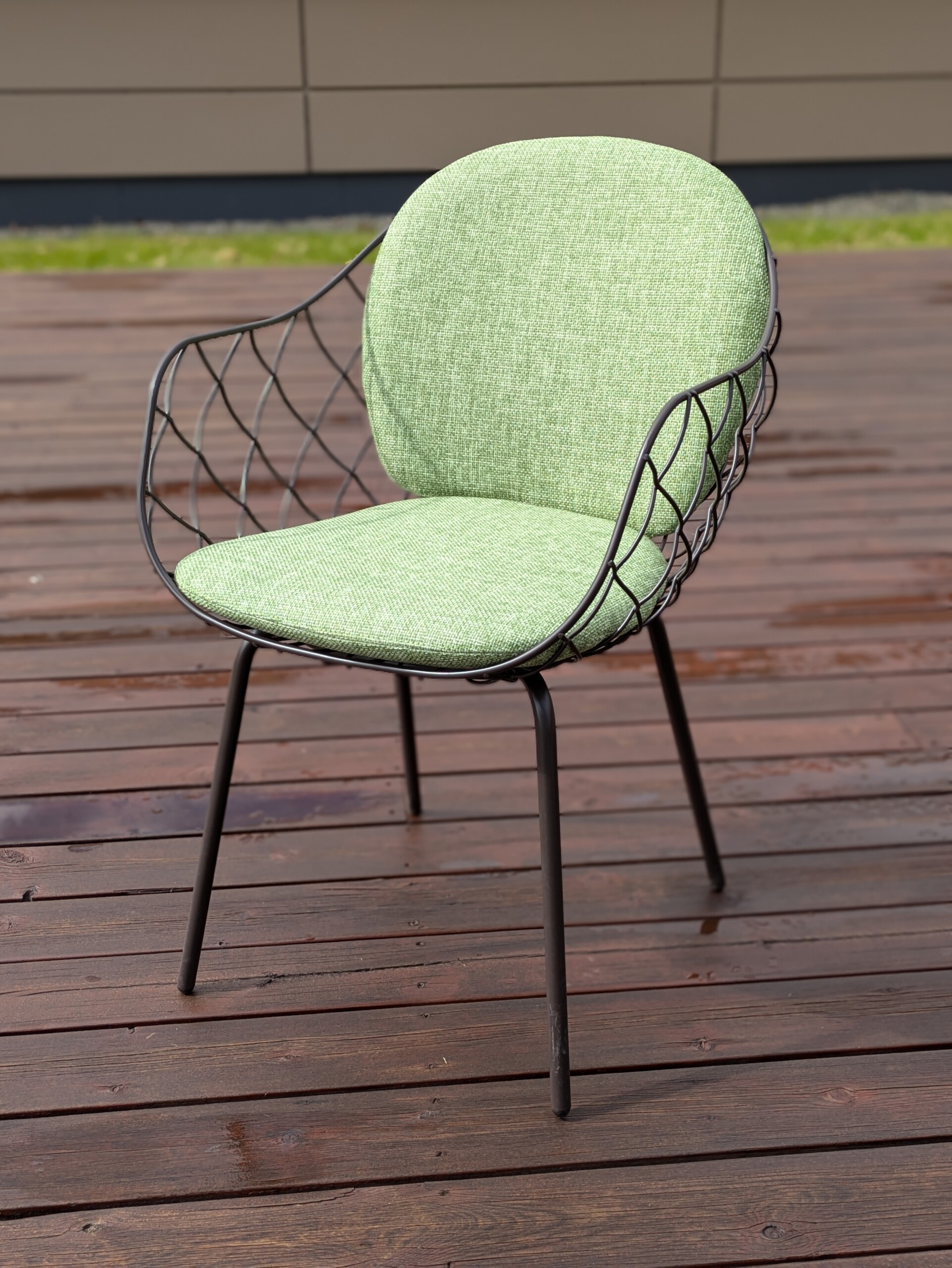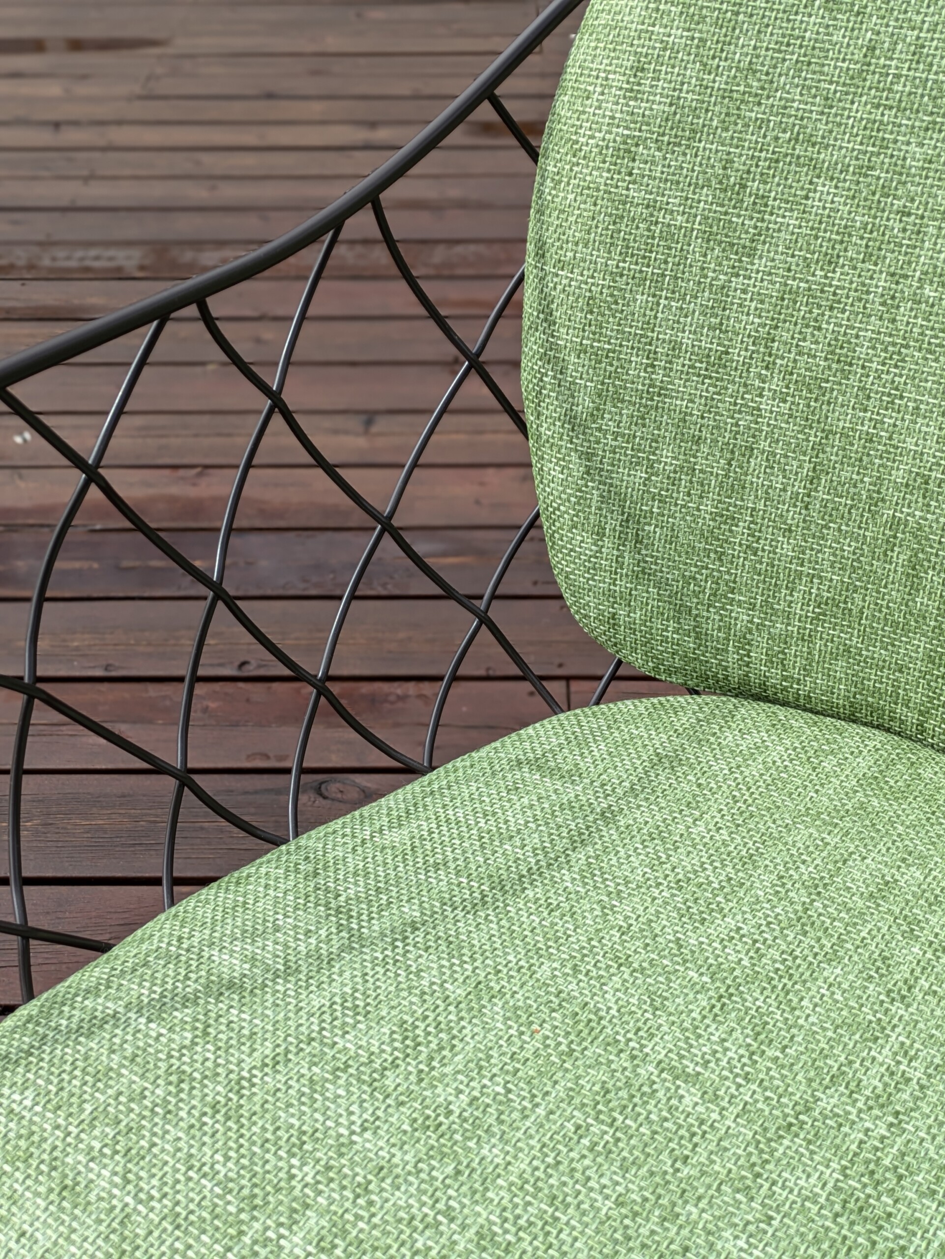 Seat and backrest in fabric (green). Legs in metal (brown).