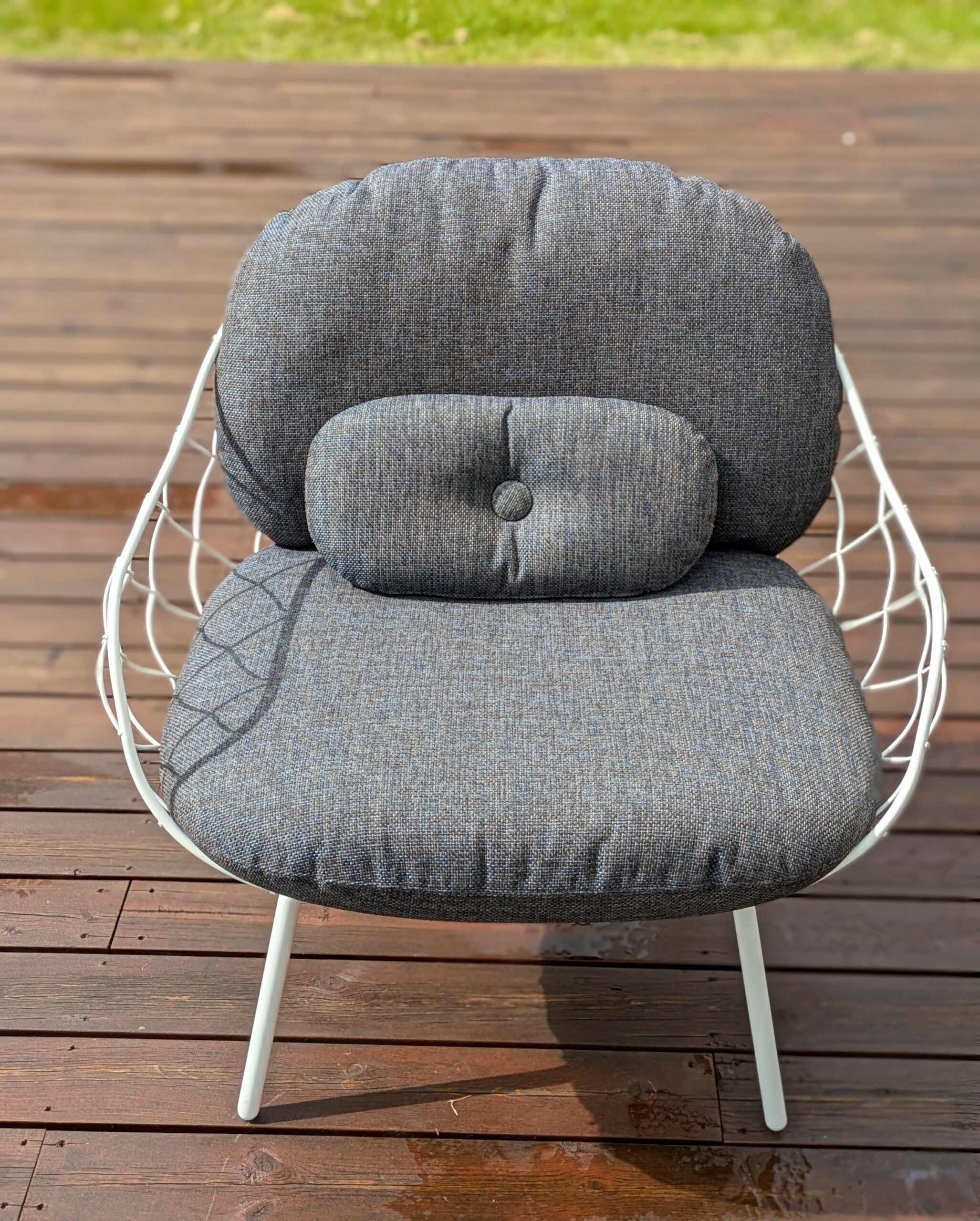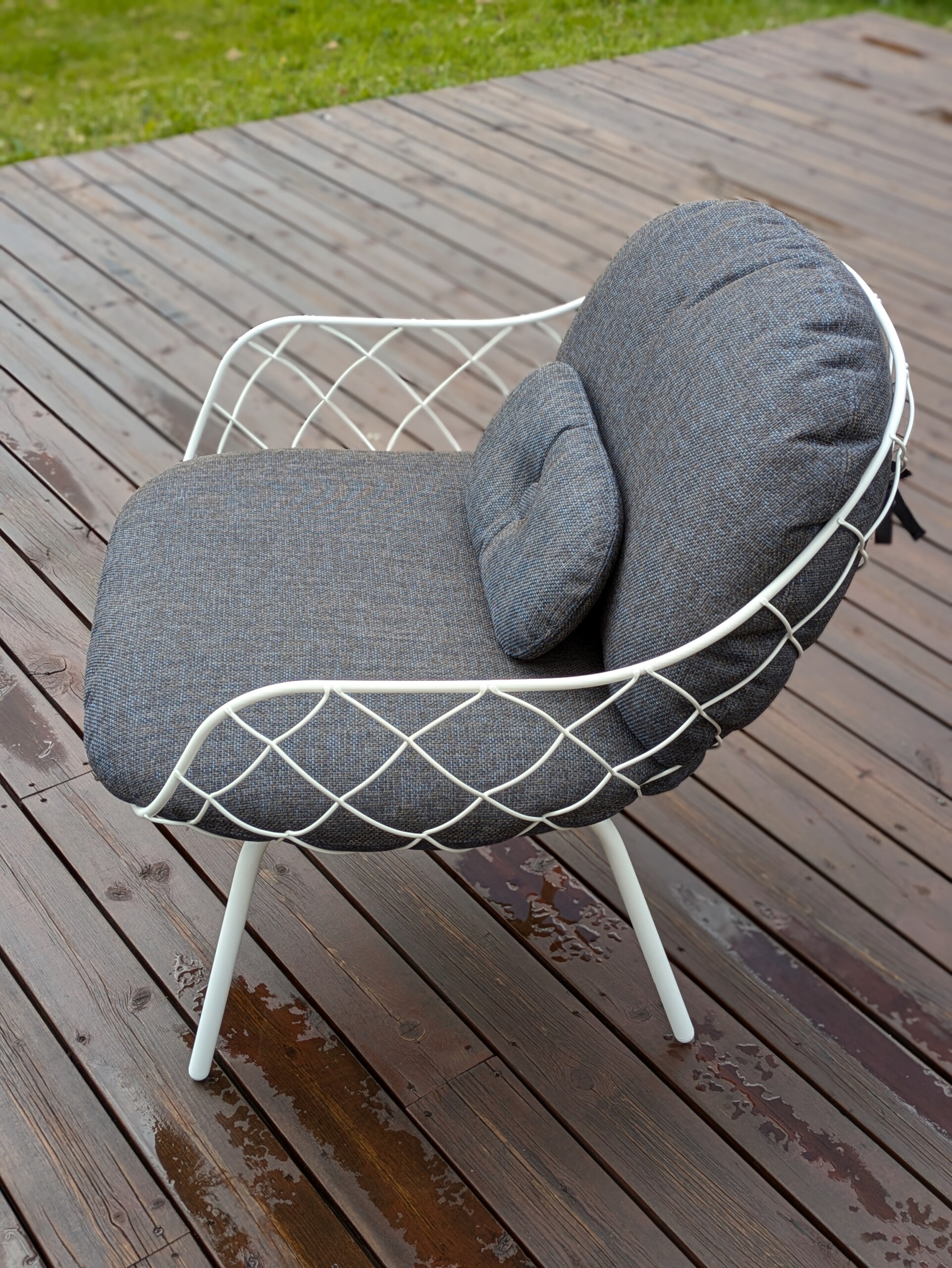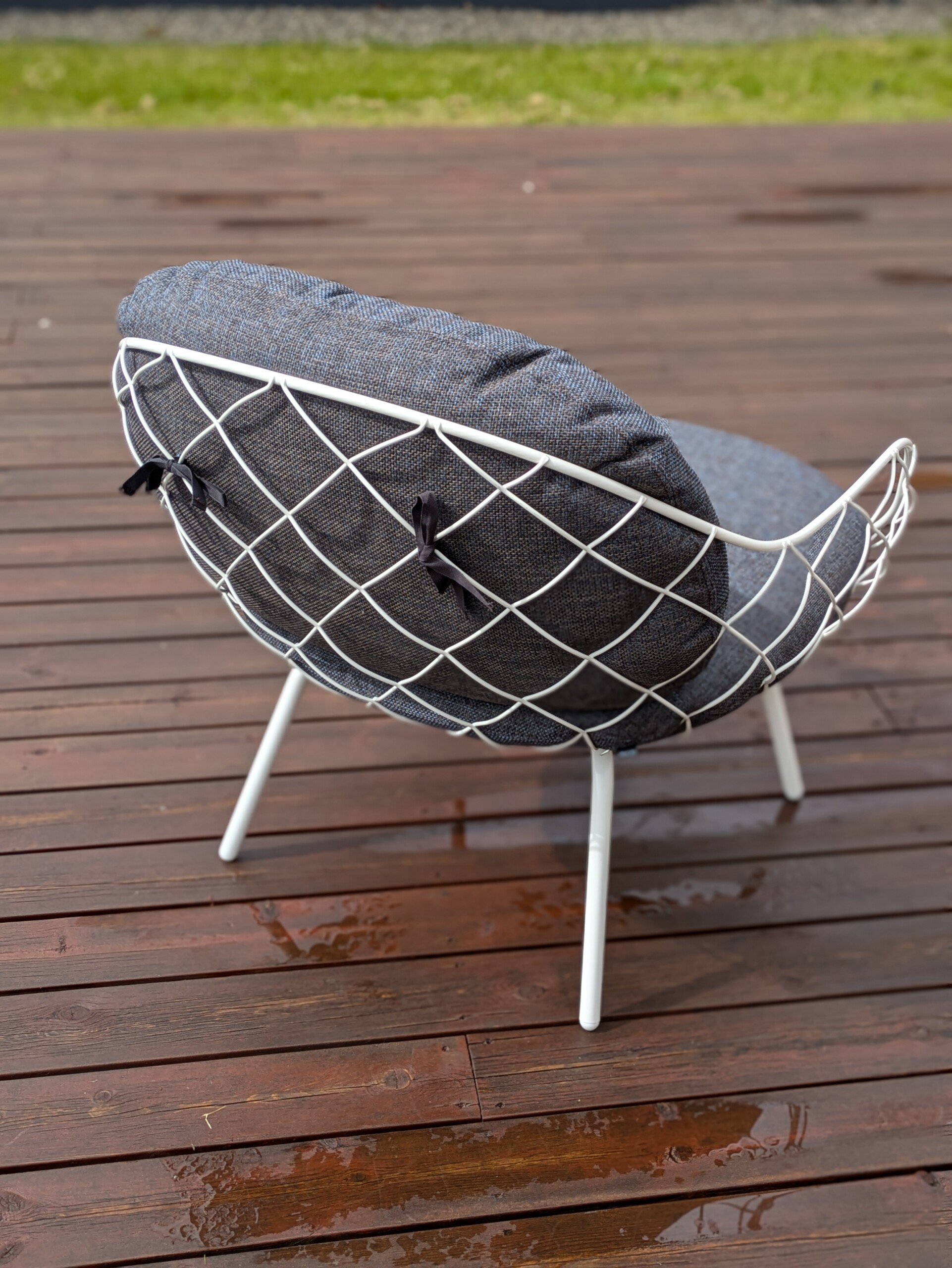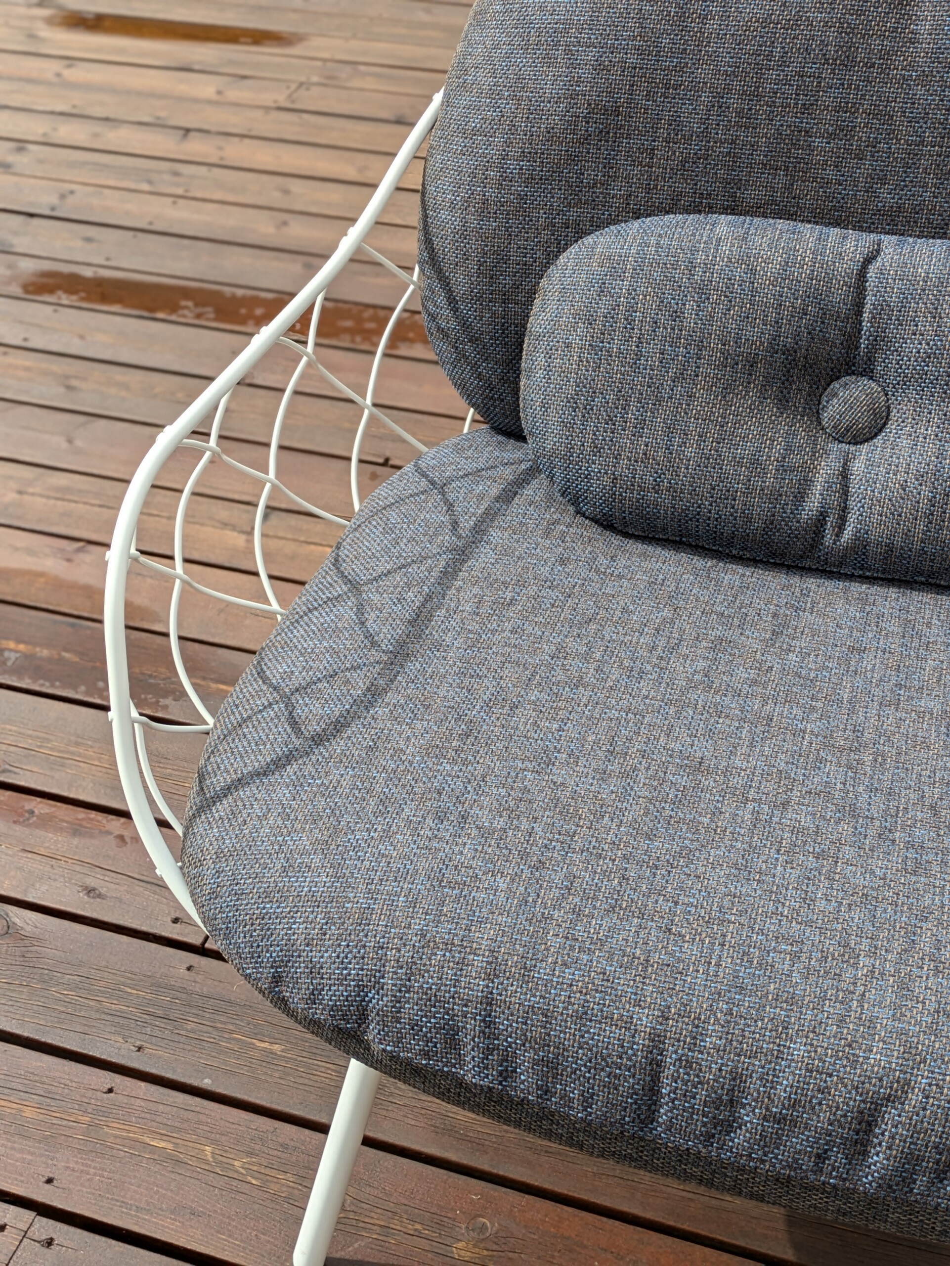 Seat and backrest in fabric (blue). Legs in metal (white).
