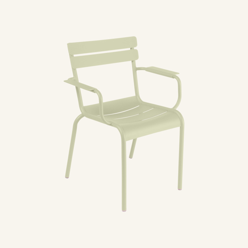 Seat, backrest and legs in metal (green).